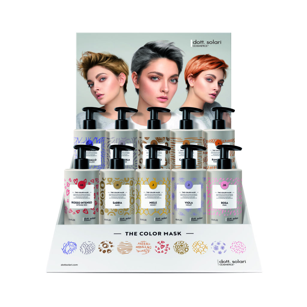 The Color Mask: es la línea de mascarillas con pigmentos directos, diseñada para aportar nutrición y reflejos vivos al cabello natural o teñido. Contiene Aceite de Argán, para fortalecer la estructura capilar, Luminescine para aportar luminosidad al color cosmético y vitaminas con acción antioxidante, para preservar la intensidad del reflejo entre un tratamiento de color y el siguiente.