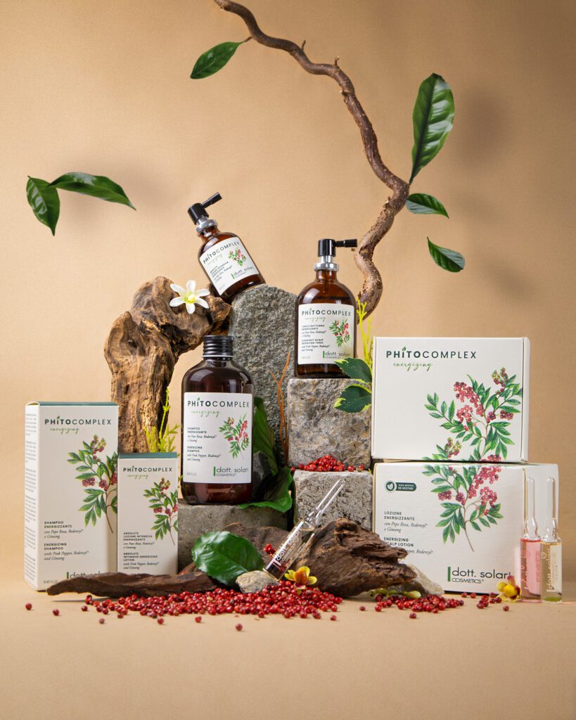 La línea ha evolucionado con el paso del tiempo, adaptándose a las cambiantes necesidades del mercado, manteniendo al mismo tiempo un arraigo constante en su propia tradición formulativa. Phitocomplex también significa naturaleza, ya que surge de la investigación constante de ingredientes de origen natural. De hecho, las plantas, las frutas, las flores y las raíces son la fuente de los ingredientes más eficaces para la belleza del cabello: aceites esenciales, extractos vegetales, proteínas y vitaminas.