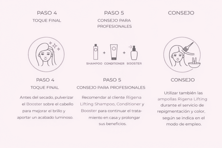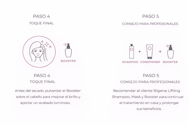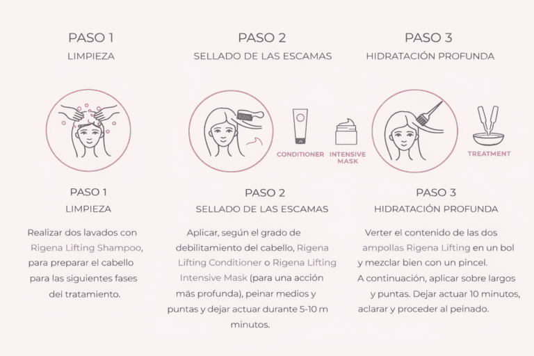 Rigena Lifting es el tratamiento revitalizante para el cabello, diseñado para reconstruir en profundidad la fibra capilar dañada por agresiones químicas o mecánicas. Rigena Lifting fortalece el cabello, lo hace más resistente, más fácil de peinar y suave al tacto.